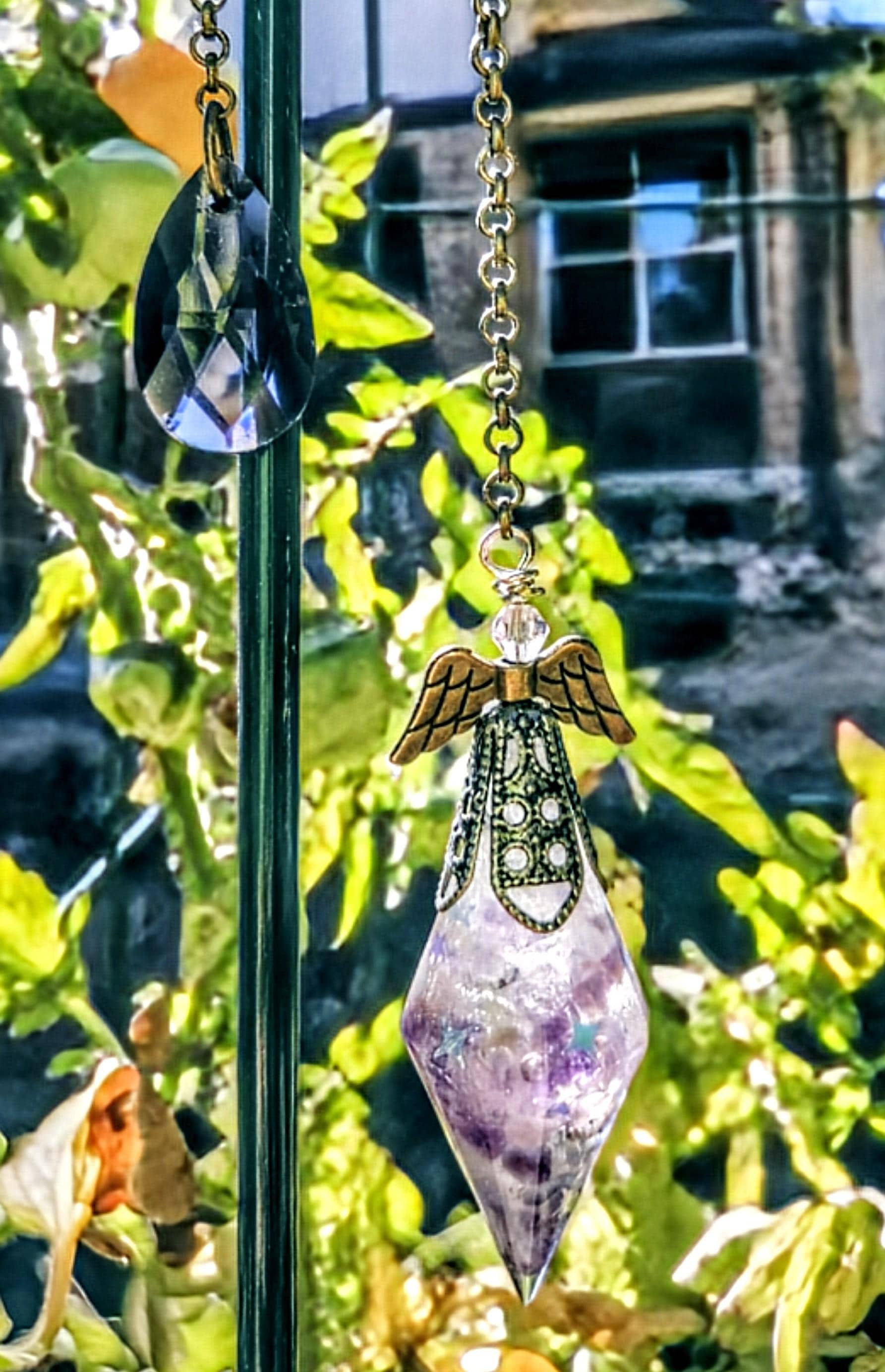 Hold your pendulum by the chain, take a deep breath, and let it still. Ask it to show your “yes” and “no” responses. Once you’ve connected, use it to gain clarity, align chakras, locate energy blocks, or receive intuitive answers. Cleanse regularly with moonlight, incense smoke, or selenite.